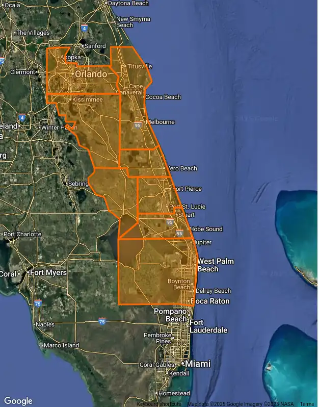 We service Orange, Osceola, Brevard, Indian River, St. Lucie, Martin, Okeechobee, and Palm Beach counties, from Orlando to Boca Raton.